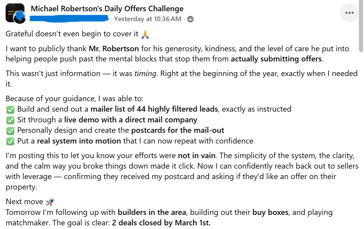 You’ll pull a list of motivated landowners (using the exact approach I teach my students) so you have real people to contact.